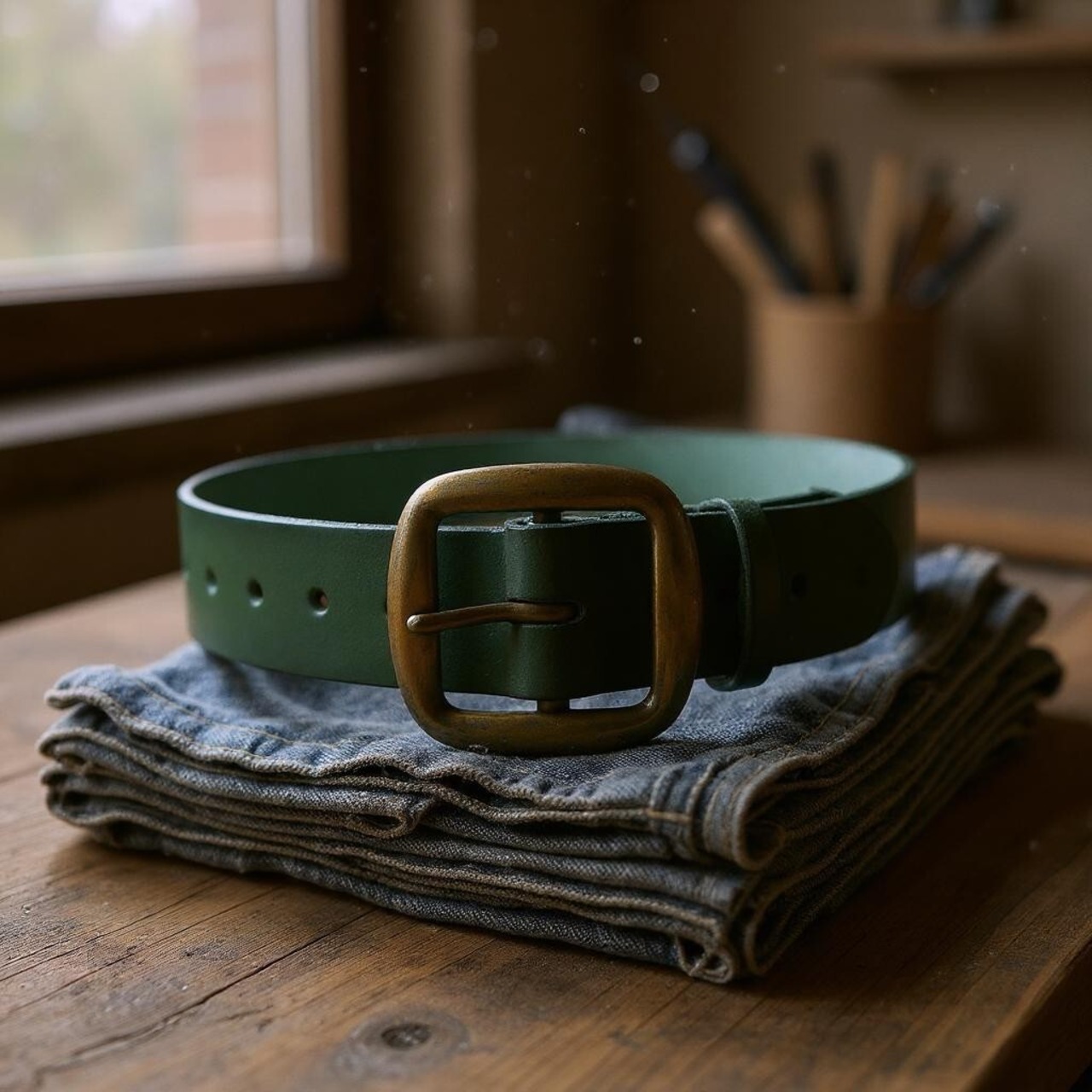 愛用のデニムやチノパンと共にじっくりケアして育てるハンドメイドベルト。