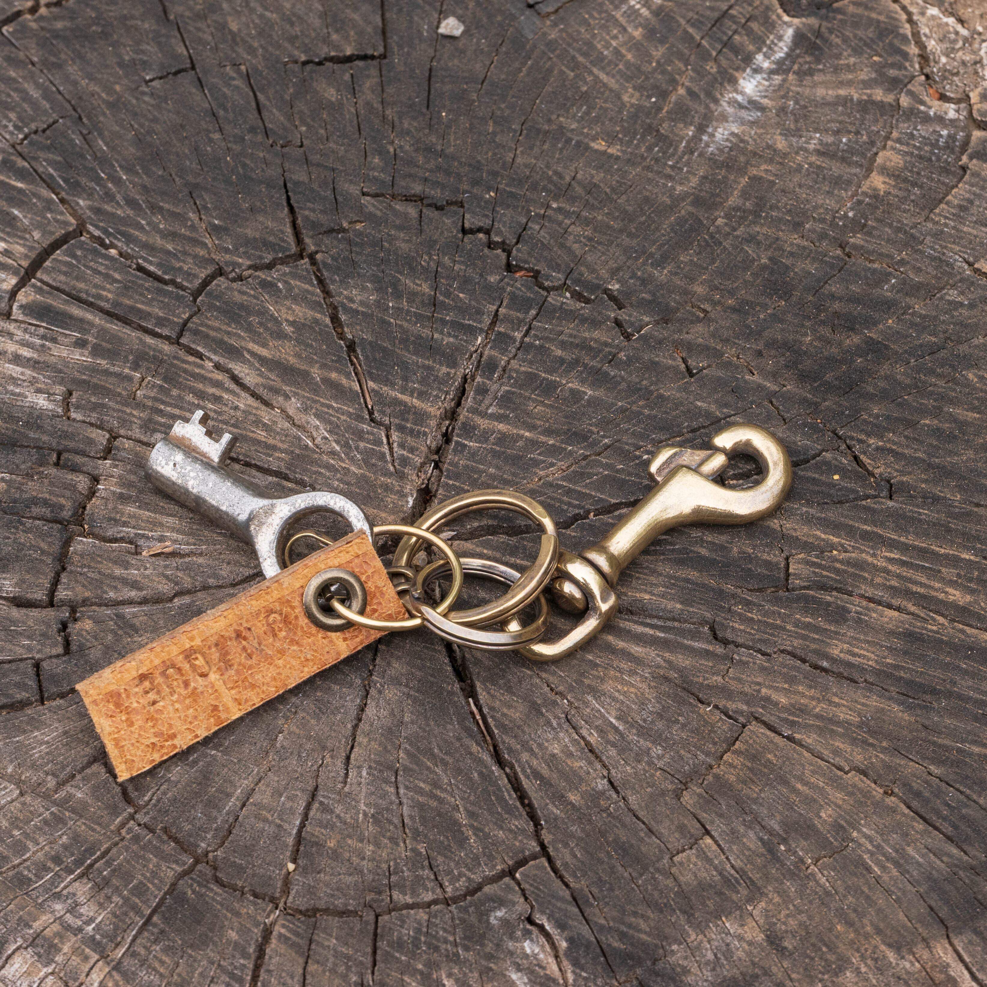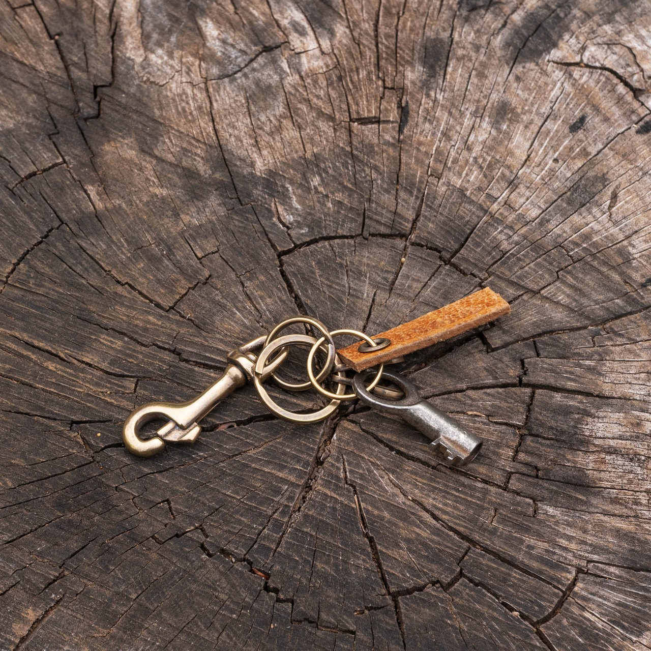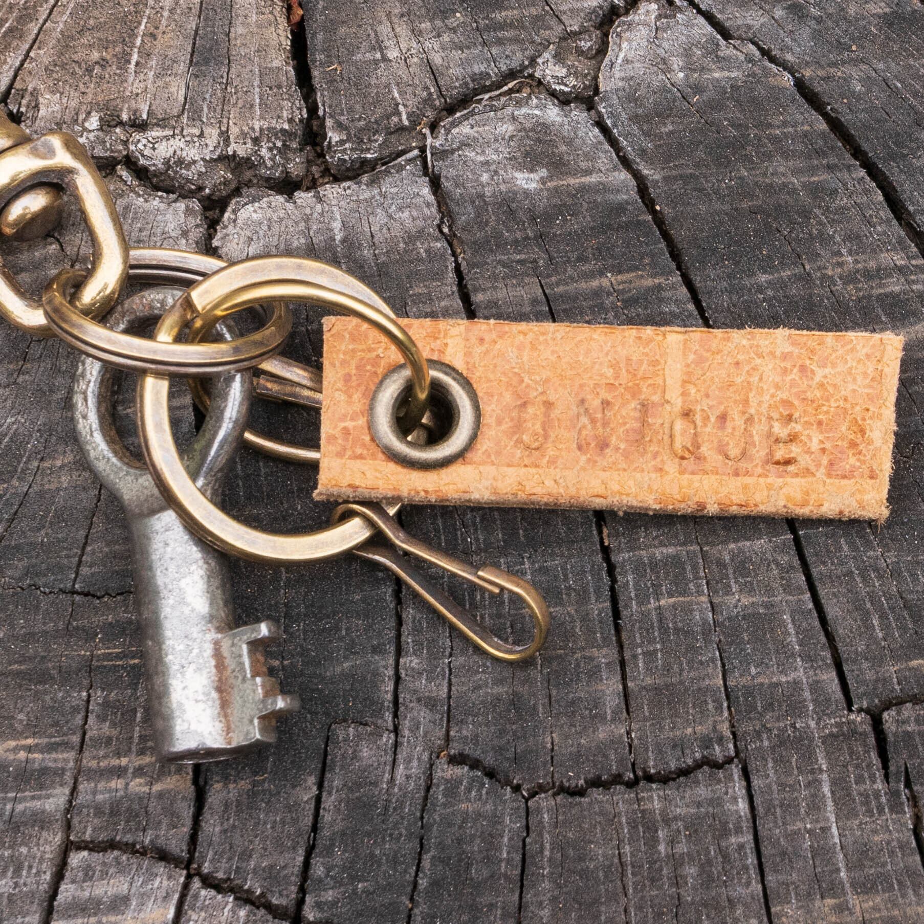 鍵と革製のタグを組み合わせた一点物のキーホルダーです。