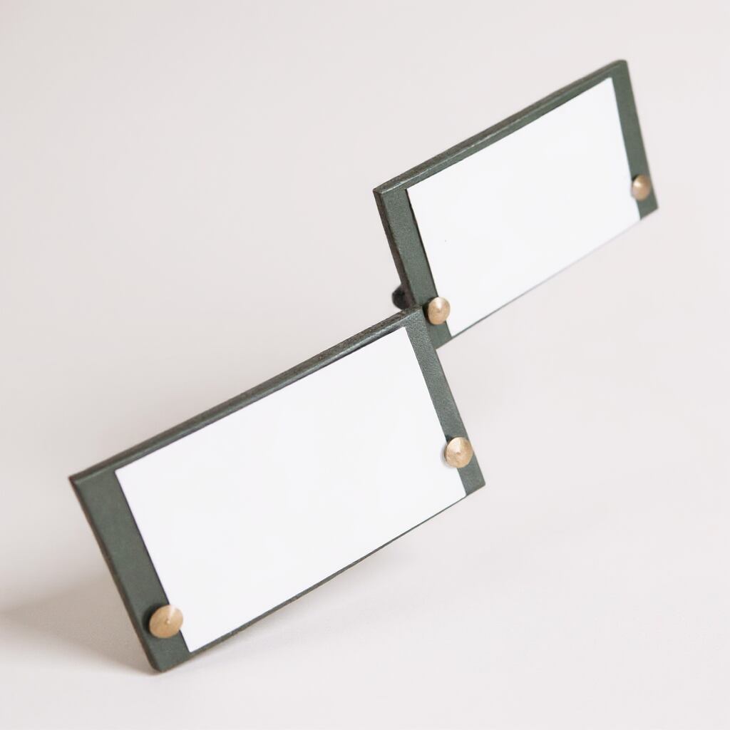 取り外し可能な真鍮製の組ネジで両側からカードを挟んで飾る仕様となっています。