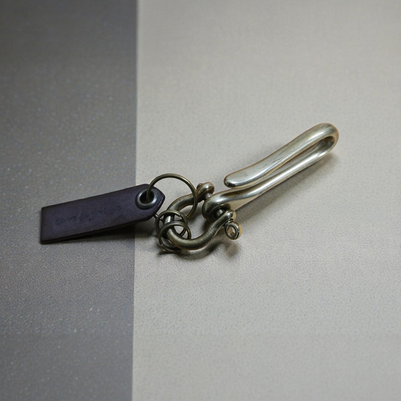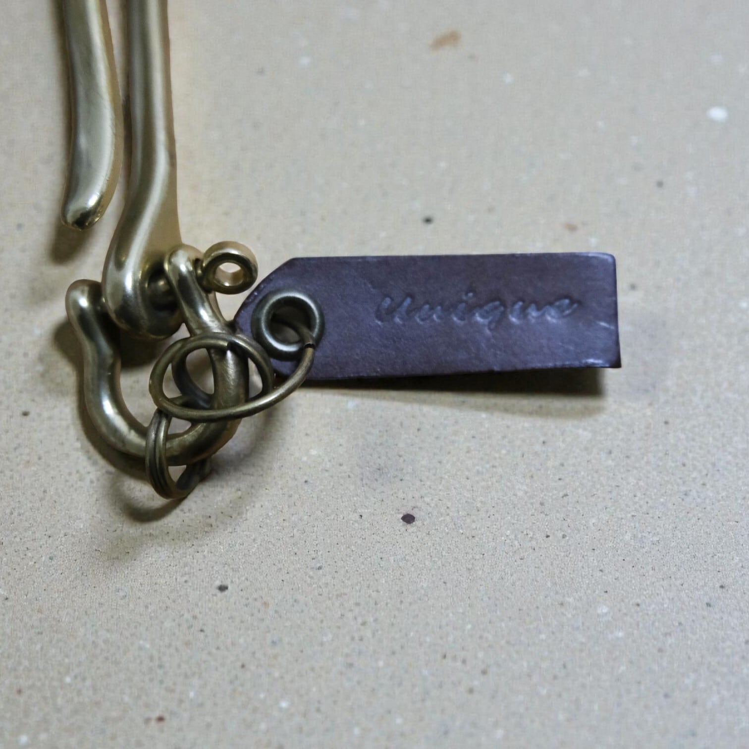 手仕事でアンティーク加工を施した真鍮パーツのキーホルダーです。
