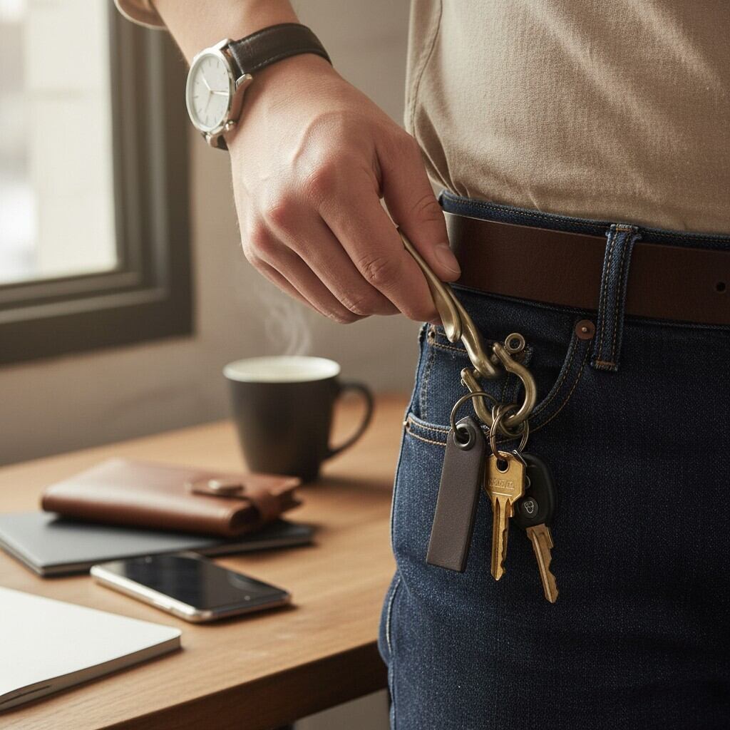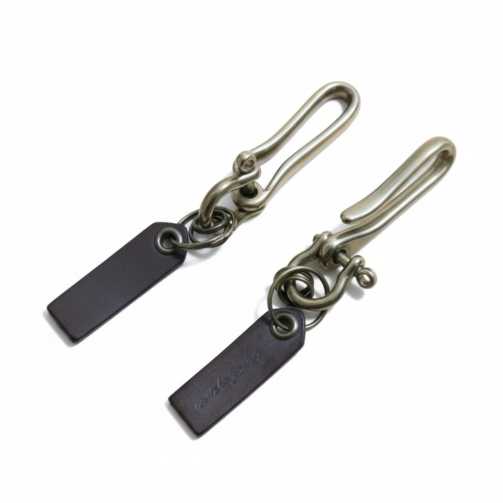 ベルトやコインポケット等にかけてお使い頂けるフック型の仕様になっています。